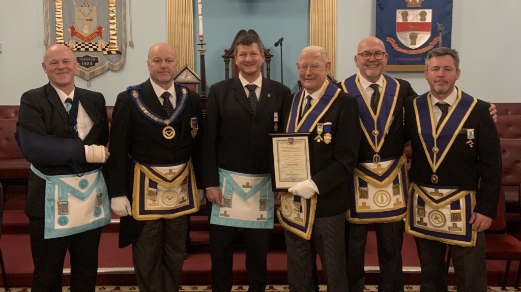 For many of the brethren present it is a milestone we will not likely reach, and it was great to have the Assistant Provincial Grand Master Mark Steventon-Smith present the award.