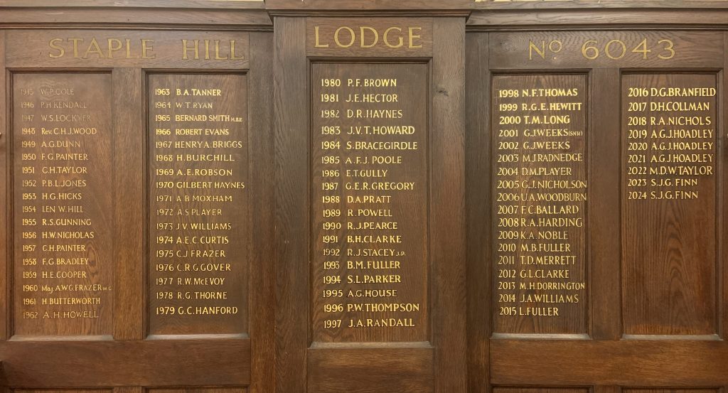 Since its consecration Staple Hill has been proudly served by the following brethren as master of the lodge.